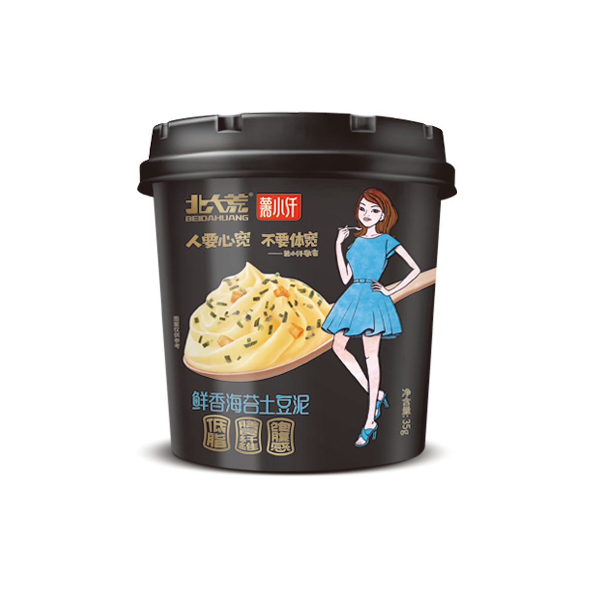 土豆泥:本產品以北大荒優質綠色馬鈴薯全粉為主要原料,科學調味、配比營養、美味又健康。包括海苔味、咖喱牛肉味、牛肉味和雞茸香菇味等多種口味。